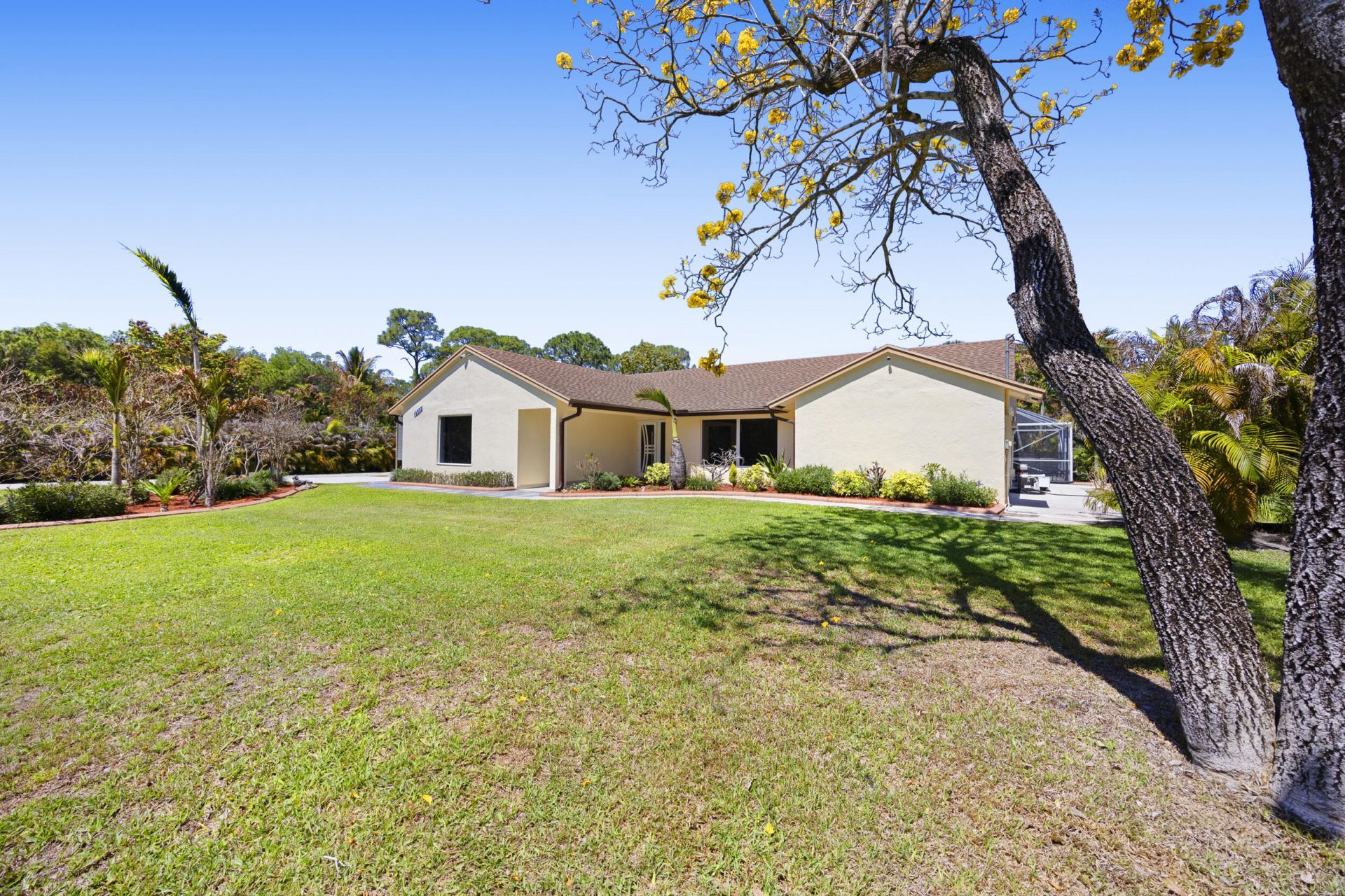 Your Private Florida Paradise Awaits Welcome to a rare gem nestled in the heart of The Acreage-where space, privacy, and the Florida lifestyle come together on your own piece of paradise. Tucked away on a lush, fully fenced 1.15 lot with impressive electric iron entry gates, this meticulously upgraded home is the sanctuary your family has been searching for. Inside, No Detail Was Overlooked. The kitchen is well maintained and move-in ready, featuring solid wood cabinets, granite countertops, and...Your Private Florida Paradise Awaits Welcome to a rare gem nestled in the heart of The Acreage-where space, privacy, and the Florida lifestyle come together on your own piece of paradise. Tucked away on a lush, fully fenced 1.15 lot with impressive electric iron entry gates, this meticulously upgraded home is the sanctuary your family has been searching for. Inside, No Detail Was Overlooked. The kitchen is well maintained and move-in ready, featuring solid wood cabinets, granite countertops, and stainless steel appliances-including a brand-new refrigerator. Ceramic tile flooring flows throughout the entire home. Every light, ceiling fan, outlet, and switch has been replaced. Crown molding adds a refined, elegant touch throughout, and both the master bathroom and cabana bathroom have been beautifully renovated. Freshly painted inside and out, this home shows like new. Pull up the driveway, take in the lush tropical landscaping and decorative curbing, and you'll already know-this one is different. Flexible Living Space to Grow Into. The garage has been thoughtfully converted into an air-conditioned bonus room complete with its own closet-a generous 420 square feet of flexible space perfect for a home office, playroom, gym, media room, or guest suite. This is the kind of versatile space that modern families truly appreciate and rarely find. Peace of Mind, Built In. Major systems have all been thoughtfully upgraded-a high-efficiency air conditioning system, a whole-home water softener and filtration system, and a new water heater, all backed by warranties. The terrace ceilings and soffits were completely redone with wire rope and cement, ensuring durability and a polished, lasting finish. Impact-resistant doors and windows throughout the home provide security and storm protection, while a smart home security system with cameras covering every area of the property gives your family confidence around the clock. New gutters round out a home that has truly been maintained and improved with care. A Backyard Built for Living. The screened-in pool with a large covered patio is the heart of this outdoor oasis-perfect for entertaining, weekend family fun, or simply unwinding in your own private retreat. An outdoor kitchen means alfresco dining is always on the menu. The lush, manicured grounds are fed by a full irrigation system with a deep well, keeping everything green year-round. An abundance of tropical fruit trees-mango, avocado, plum, cherimoya, loquat, sour orange, and exotic palms-create a truly one-of-a-kind backyard experience. And for those with a boat, RV, or extra vehicles, a large detached covered storage structure provides the space and protection you need-a feature rarely found in any listing. Location That Makes Life Easy. Situated in The Acreage, one of Palm Beach County's most beloved communities known for its spacious lots and relaxed, private lifestyle, you're still remarkably close to everything your family needs. Publix, Trader Joe's, and everyday shopping are just minutes away. The Acreage Community Park-a beloved family hub with athletic fields, playgrounds, and picnic pavilions-is nearby, as is the expansive Okeeheelee Park and Lion Country Safari for weekend adventures the whole family will love. And with the road scheduled to be paved in 2027, the neighborhood is only going to get better-making now the perfect time to plant your roots here. This is more than a home-it's a lifestyle. Properties with this level of care, privacy, and outdoor living rarely come to market. Don't miss your chance to make it yours.