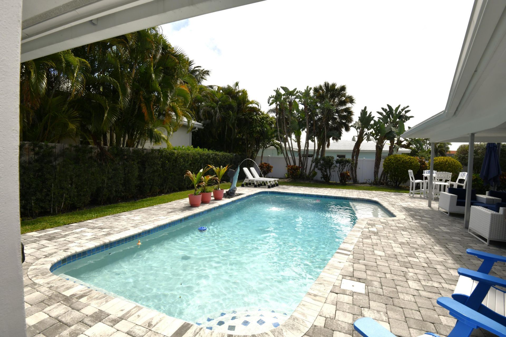 Experience coastal living in the heart of Palm Beach Shores! This 4 bed, 3-bath home is located in a quiet, pristine beach community just two blocks from one of Florida's top-rated beaches, across the street from the #1 sport fishing fleet at the world-famous Sailfish Marina where you can catch sunsets with waterfront dining and Tiki bar cocktails and close Phil Foster Park, one of the US top-ranked diving and snorkeling experiences. This one-story split floorplan features a spacious living room...Experience coastal living in the heart of Palm Beach Shores! This 4 bed, 3-bath home is located in a quiet, pristine beach community just two blocks from one of Florida's top-rated beaches, across the street from the #1 sport fishing fleet at the world-famous Sailfish Marina where you can catch sunsets with waterfront dining and Tiki bar cocktails and close Phil Foster Park, one of the US top-ranked diving and snorkeling experiences. This one-story split floorplan features a spacious living room, separate entertainment room, Jack & Jill bath, cabana bath, interior laundry, 2-car garage, updated master suite with dual sinks, walk-in shower and walk-in closet with direct access to a covered patio with a heated pool, cabana bath and tropical landscaping. Available furnished or unfurnished this is your opportunity to start living the island lifestyle today