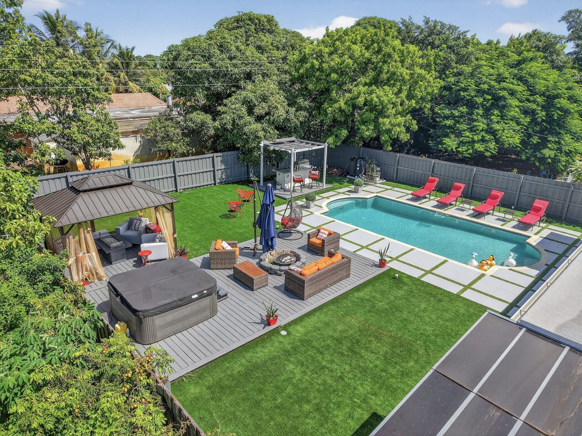 Completely renovated from top to bottom! This stunning 3-bedroom, 2-bathroom home offers modern finishes throughout and is move-in ready. Located in a desirable non-HOA community, you'll enjoy freedom and flexibility with no restrictions. The home features a private, fully fenced backyard oasis with a heated pool, fire pit, hot tub, patio for grill space, bar area and artificial grass, creating a very low maintenance outdoor space-perfect for entertaining or relaxing year-round. Conveniently sit...Completely renovated from top to bottom! This stunning 3-bedroom, 2-bathroom home offers modern finishes throughout and is move-in ready. Located in a desirable non-HOA community, you'll enjoy freedom and flexibility with no restrictions. The home features a private, fully fenced backyard oasis with a heated pool, fire pit, hot tub, patio for grill space, bar area and artificial grass, creating a very low maintenance outdoor space-perfect for entertaining or relaxing year-round. Conveniently situated with easy access to the freeway and just minutes from the beach, this property combines style, comfort, and prime location. Walking/Biking/Golf Cart distance from all that downtown Boynton Beach has to offer! This property could be ideal for investors. Offered at $895,000-cash only Furniture Negotiable.